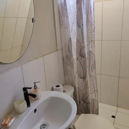 The apartment offers guests the convenient feature of bath sheets in the bathroom. Additionally, you'll find a separate toilet and a shower.